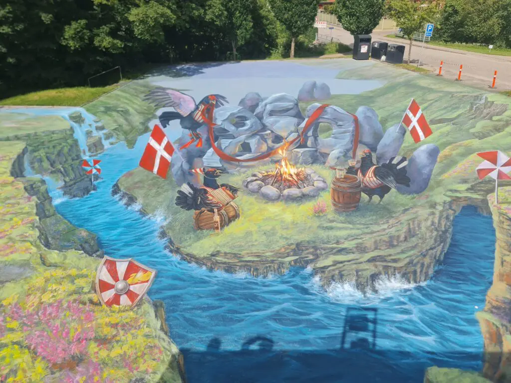 Værket er malet af tre mexicanske Street Art-kunstnere i uge op til festivalen, og det har referencer til Brandes 850 års historie.